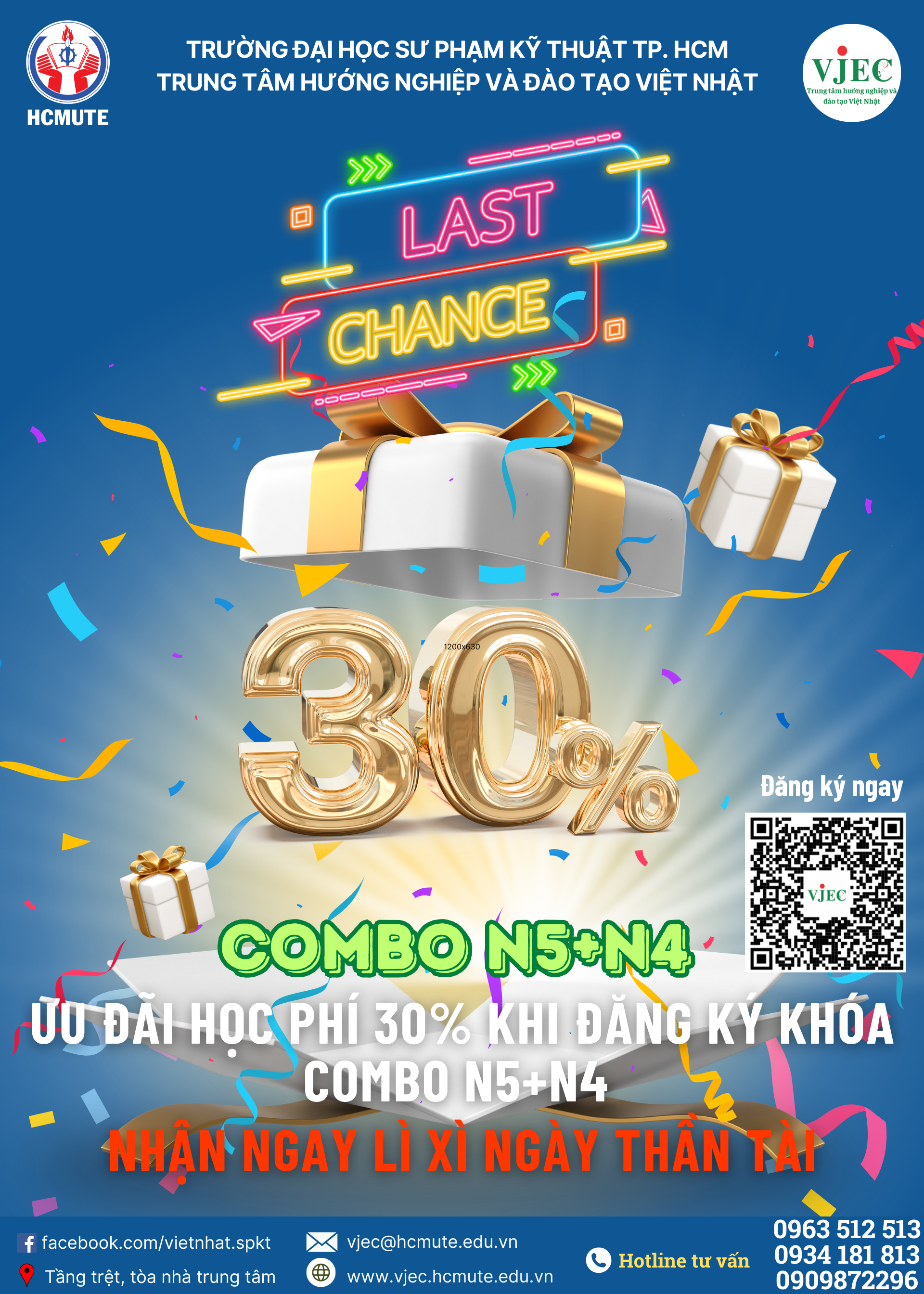 VJEC dành tặng học bổng 30% cho lớp N3 dự kiến khai giảng ngày 24/12/2025