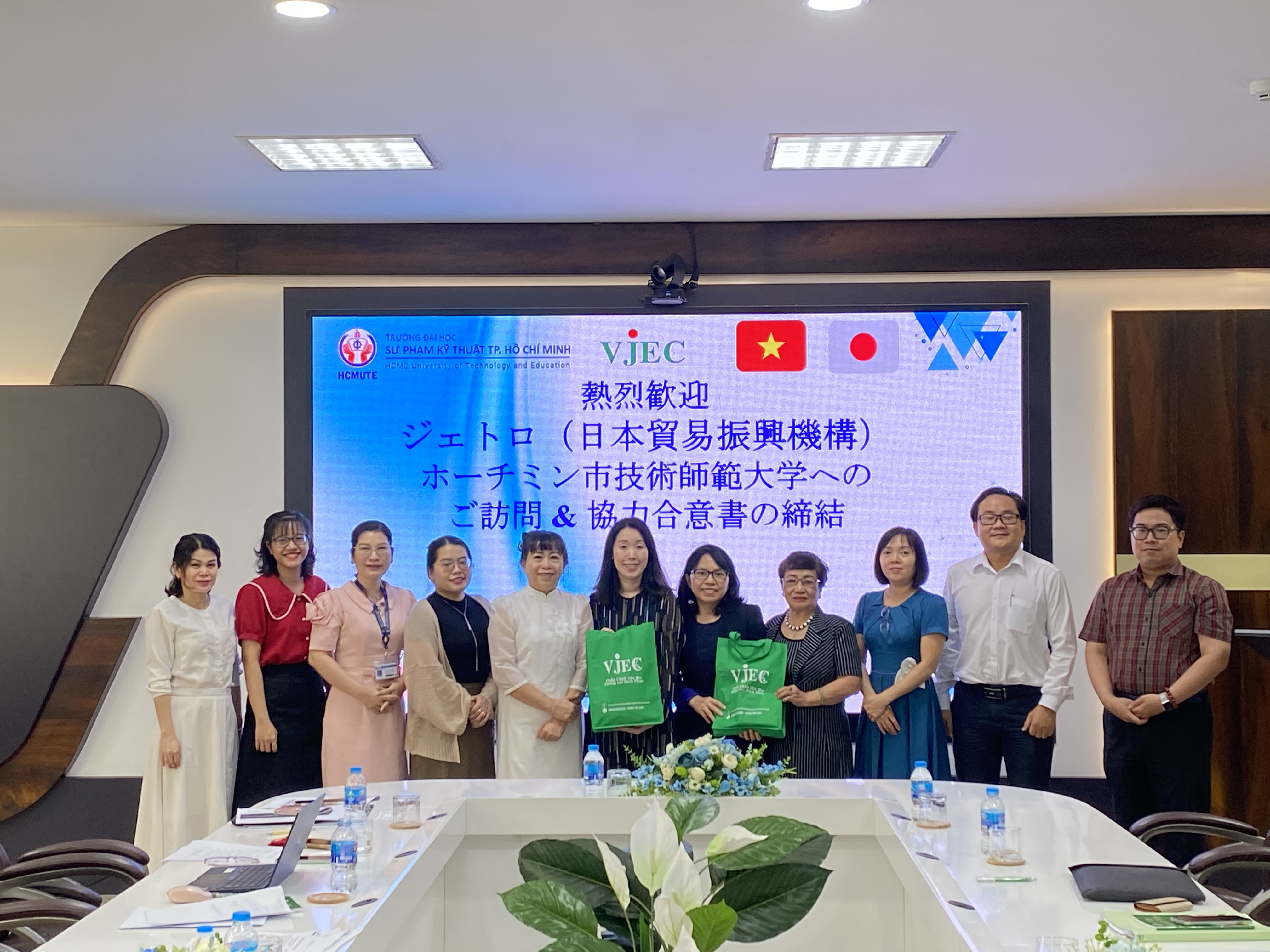 Sáng ngày 24/10/2025, tại Phòng họp I – Lầu 5 Tòa nhà Trung tâm, Trung tâm Hướng nghiệp và Đào tạo Việt Nhật (VJEC) – Trường Đại học Sư phạm Kỹ thuật TP.HCM đã vinh dự đón tiếp đoàn công tác của Tổ chức Xúc tiến Thương mại Nhật Bản đến thăm và làm việc.