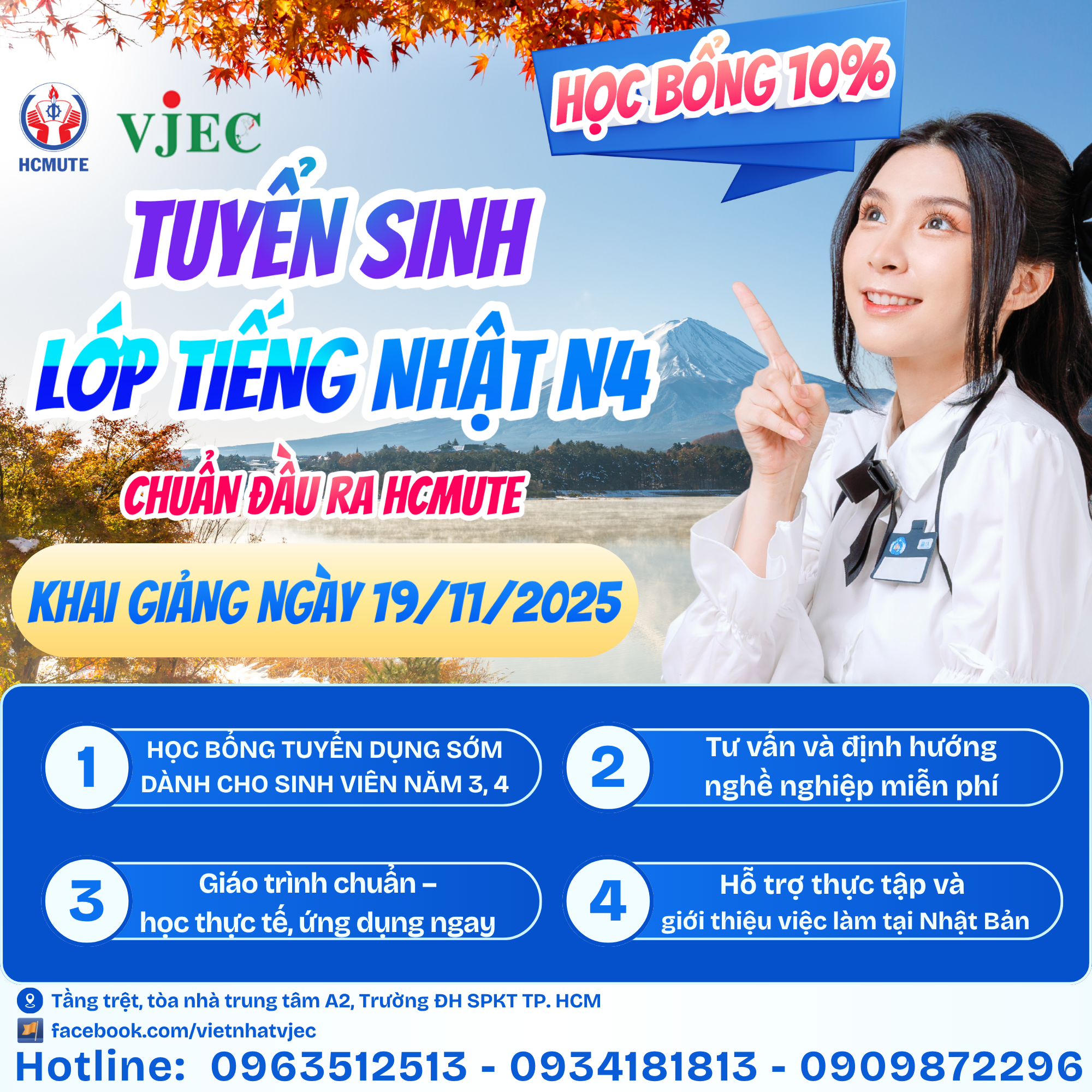 Lớp TIẾNG NHẬT N4 chuẩn đầu ra HCMUTE đã chính thức tuyển sinh – khai giảng ngày 19/11/2025!Rating: 8 out of 101069.